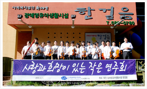 실내악연주회와 더불어 놀이, 청소봉사등으로 장애어린이들과 함께 하는 시간을 가졌습니다.