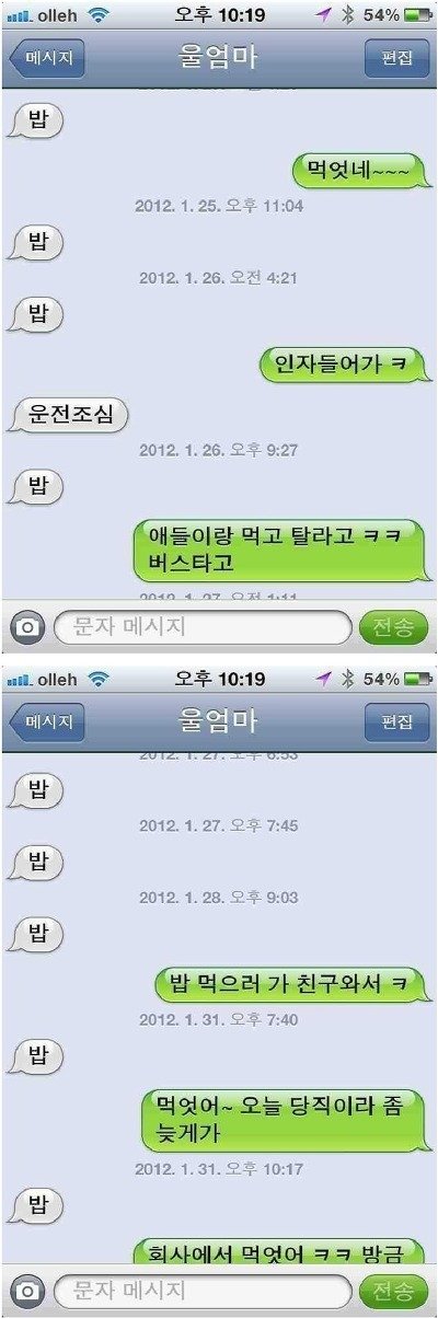 저 사진 중에 어머니가 밥 밥 밥 보내신거요.. 옛날에 판에서 본 것 같은데 엄마가 무슨 장애인이라 하셨어요.. 그래서 그 짤 내렸던걸로 아는데 웃음거리가 아니고 아들 챙기려고 그런거니까 지워주셨음 하네요~ ㅎㅎ