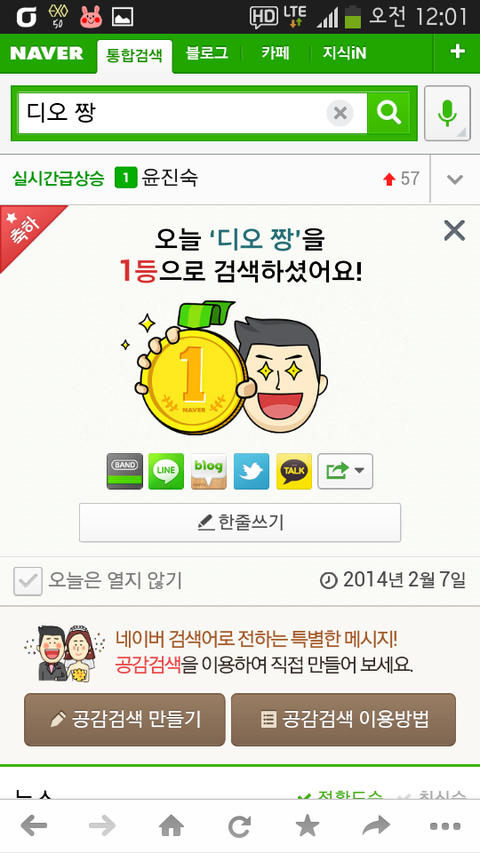 12시되자마자 도경수사랑해 눌럿는데 26등.....뭐야!!!!!!그래서 아무도 안할꺼같은 도경수짱!햇드니1등이담!!!!