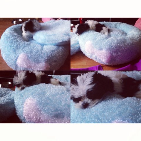 선물받은 마약방석에서 꿀잠자는 밤비입니다 ㅎㅎㅎ 밤비가 건강하게만 자라준다면, 밤비랑 저희 가족은 평생하기로 마음으로 약속했답니다. 우리 사랑하는 반려견들과 모두 잘지내요!ㅋㅋㅋㅋㅋ& 밤비보시고 의사샘이 넌 왜 얼굴은 말티즈인데 시츄 옷을입고있냐며..ㅋㅋㅋ그때부터 보이더라구여..ㅋㅋㅋㅋㅋㅋㅋ그래도 제 새끼니까 다 좋아요