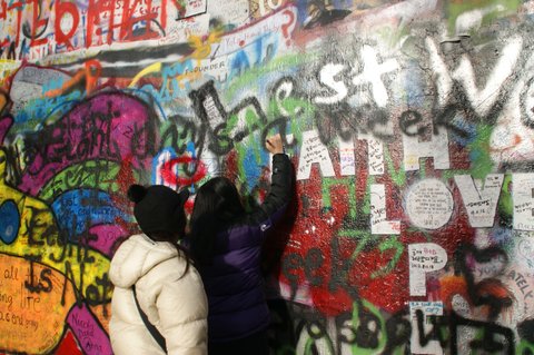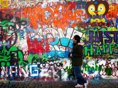 그당시 비틀즈의 노래가사가 평화를 지지하는 노래가 많았고 거기에 감명받은 체코의 대학생들이 밤마다 나와 이 벽에 평화를 갈망하는 낙서를 하곤 했다고 합니다.