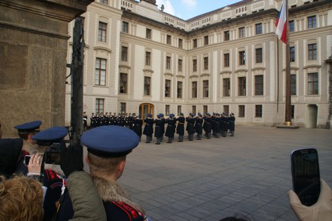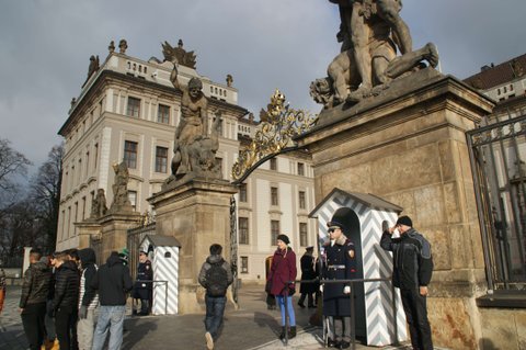 프라하성 정문, 후문에는 근위병들이 보초를 서고 있어요.