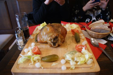 프라하성 앞쪽에 있는 식당에 들어와 전통 음식을 시켜요.