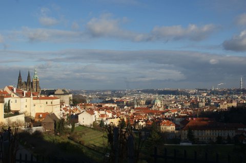 '로레타 성당'을 지나서 '페트리잔 공원' 쪽으로 넘어가는 길 도중 프라하 전경입니다.
