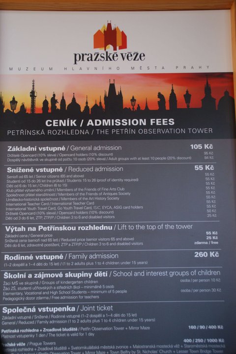전망대 가격 55코루나, 엘리베이터 이용료 55코루나.