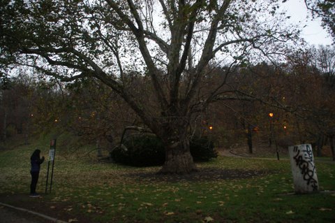 뭔가 웅장한 포스를 내뿜는 거대한 나무의 설명을 읽고 계신 누나.