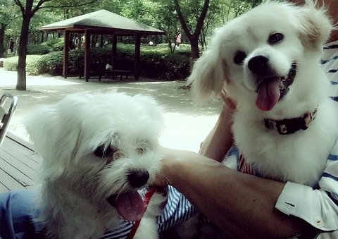 2살된 말티즈 둥이와, 1살된 믹스견 둥순이예요^^