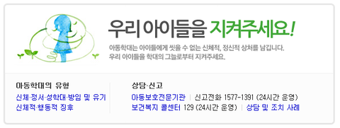포탈사이트에 '아동학대 신고'로 검색해서 나온 아동학대 신고 전화번호, 신고사례 게시판 링크 올립니다. http://korea1391.org/new_index/sub/sub4_02.php