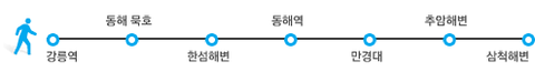 기차로 갈아탄 후 묵호에 내려 묵호에서부터 쭈욱 걸을 작정입니다.