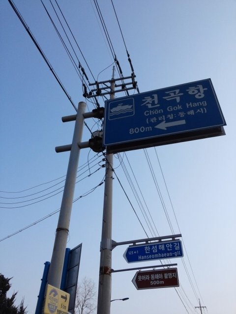 머지 않아 보인 삼척해변 이정표. 반가워 정말 반갑다 ㅠ.ㅠ