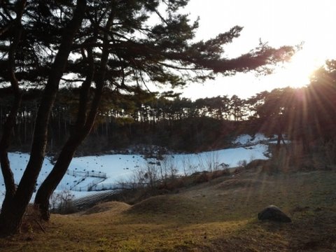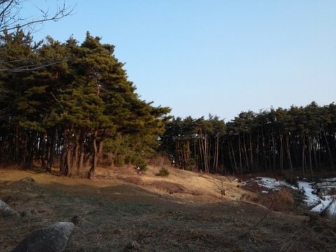옆으론 너른 들판 뒤론 빽빽한 소나무 숲이 펼쳐진 장관이었다고 하나