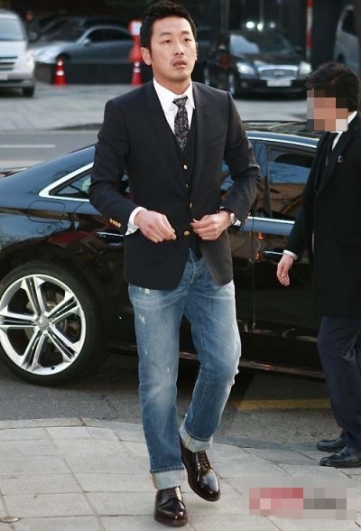 상체는 세미정장도 아닌 완전 클래식 그 자체인 정장 스탈로 쫙 빼입고서...