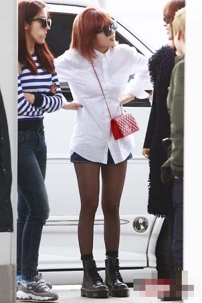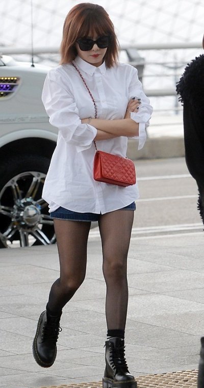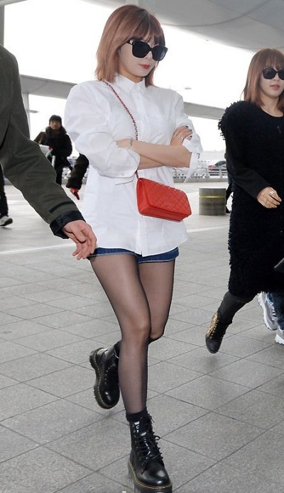 오늘 공항 사진인데 여전히 핫팬츠에 워커+ 얇은 스타킹으로 완성된 패션을 선보임