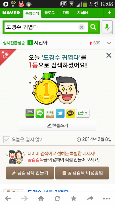 이런 단어들은 잘안쓰나봐 됴자기들은!!12시 좀지나서햣는데도 1등이야bb 도경수사랑해 는 이미포기...닝겐들겁나빨라...☆