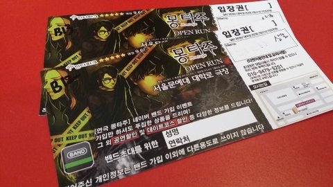 저기에 티켓표를 응모하면 연극 시작 전에 티겟 추첨이 있습니다.