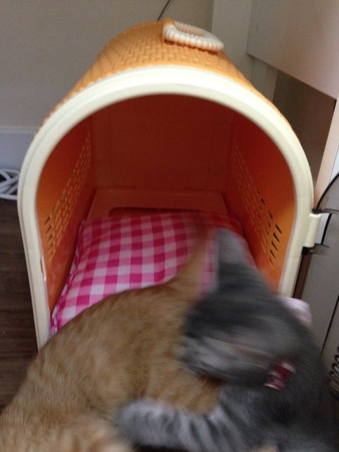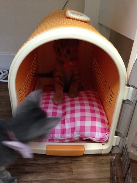 보리가 찜꽁한 이동장에 이방인이 나타났네요.