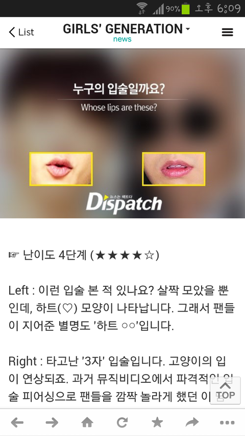 기사내용이 아이돌 입술사진보고 누군지 맞추는건데ㅋㅋㅋ 거기 경수도있어!!!⊙♡⊙