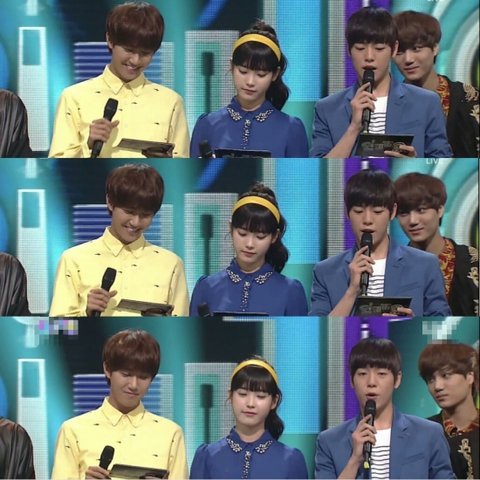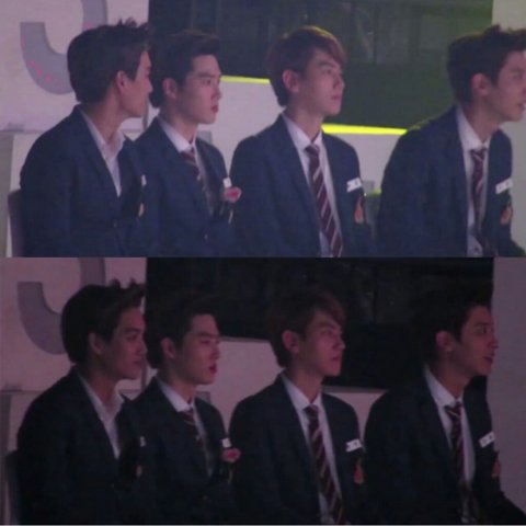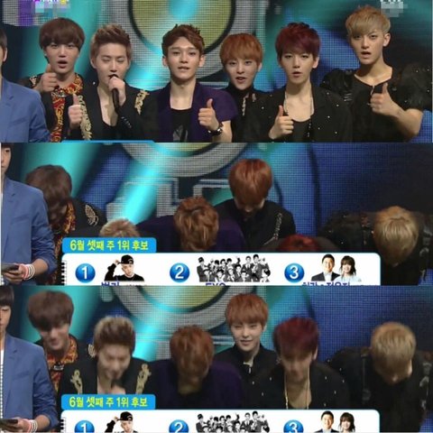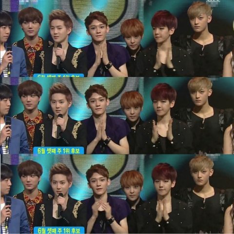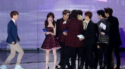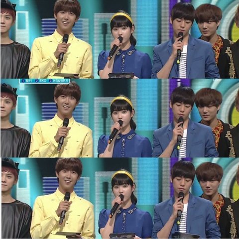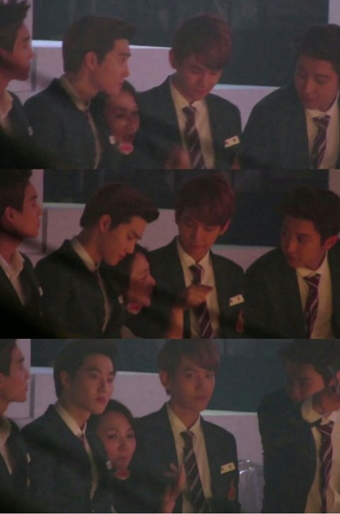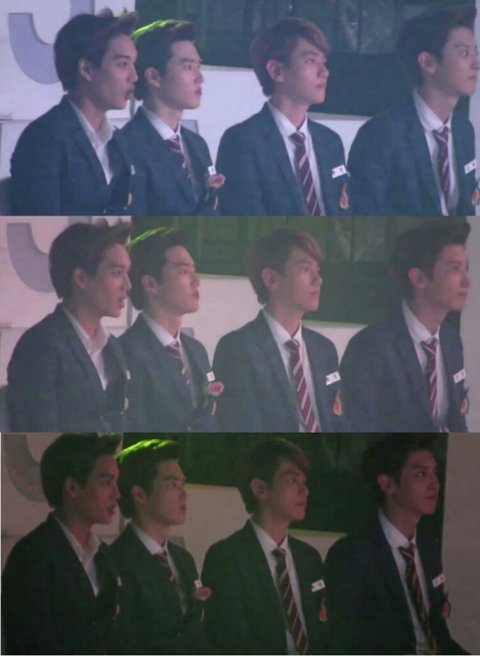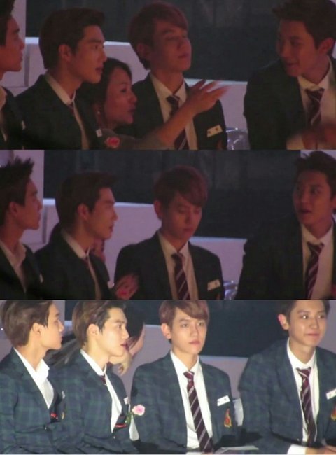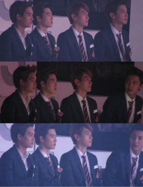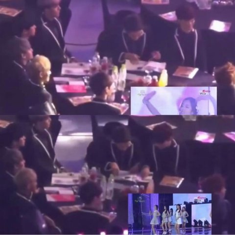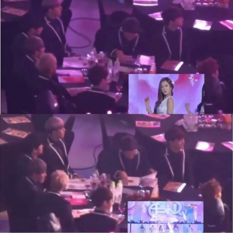 엑소멤버들은 분홍신무대를 mc석에서 직접 보고 있었음