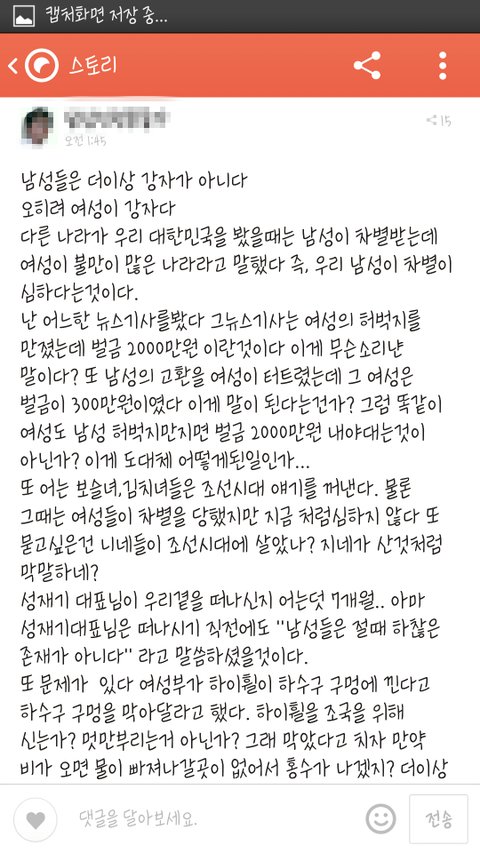 말하면서 남자권리가없다고?ㅋㅋㅋㅋ뭔소리임