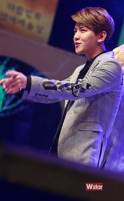 [성남(경기)=장문선 기자] 그룹 엑소 백현이 8일 오후 경기 성남시 분당구 야탑동 성남아트센터 오페라하우스에서 열린 '제20회 대한민국 연예예술상' 시상식에 참석해 그룹가수상을 수상한 뒤 축하무대를 펼치고 있다.