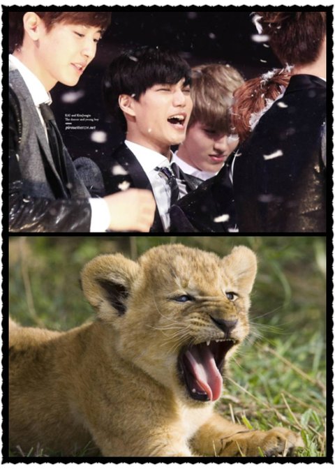 으아아아아앙 싱크돋아 종인이랑 애기사자 이미지도 딱이네!!!