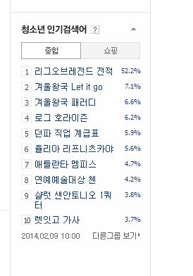 네이버 청소년인기검색어 8위 연예대술대상 첸 종대 뜸!!