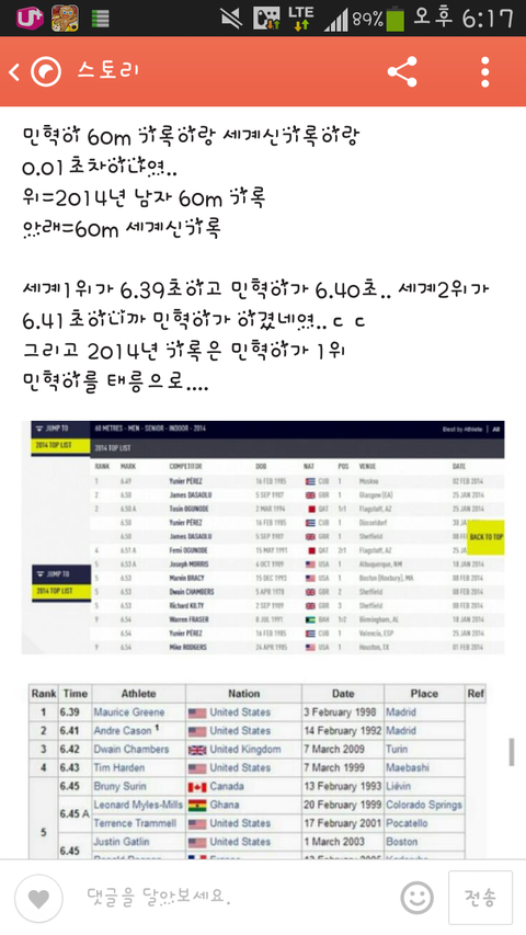 이렇게 잘하는 줄은 이제알았어요... 세계1위랑 0.01초 차이라니 대단하지 대단해