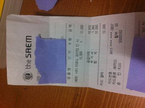 이름을 적고 가격을 지불하고 영수증을 받아왔습니다