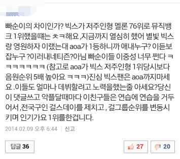 빅스팬이 에이오에이깟나ㅋㅋ?
