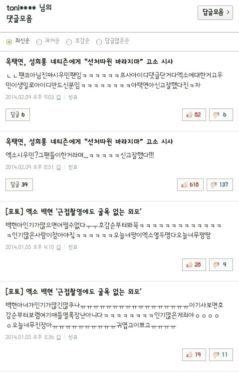 82개 전부 변백현 찬양에 시우민 까는 댓글만 미친듯이 쓰다가