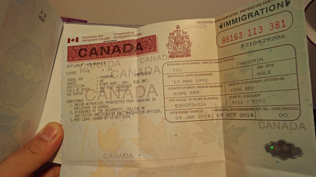토론토 피어슨공항에서, 서류검사 후, 여권에 찍어주는, 사진에 보이는 저게 Study permit.