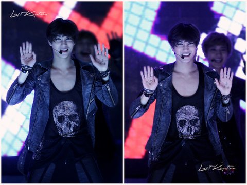 한손엔 물병들고 한손엔 마이크들어서 하트 만들기 힘들지만 팬들 보여주려고 열심히ㅋㅋㅋ
