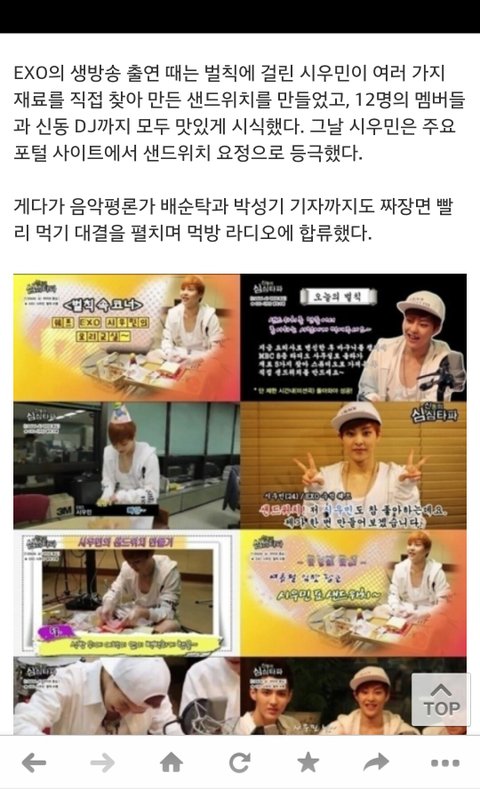 그날 시우민은 주요 포털 사이트에서 샌드위치 요정으로 등극했다.