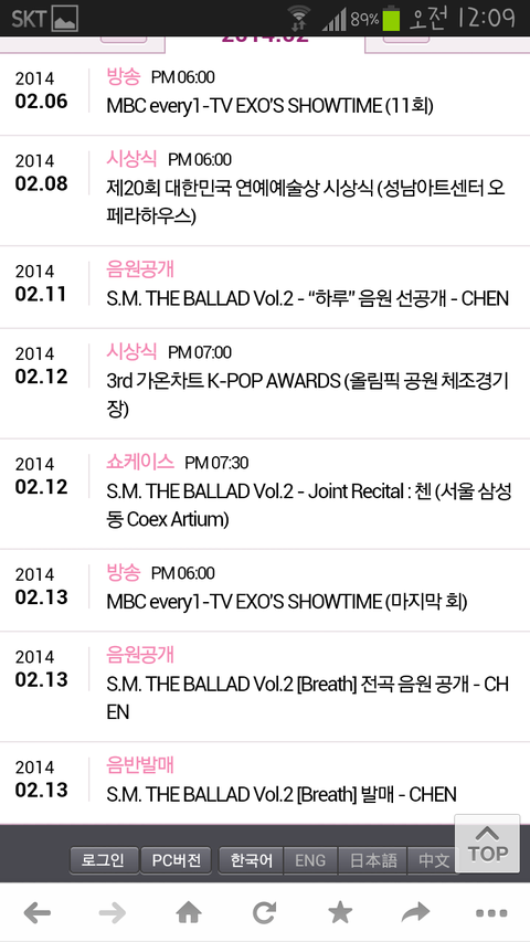 첸은 이렇게되면 스엠더 발라드 쇼케랑 가온이랑 겹치는데