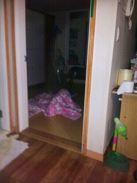 항상 아빠가 자려고 이부자리 깔아놓으면 그 위에 쏙