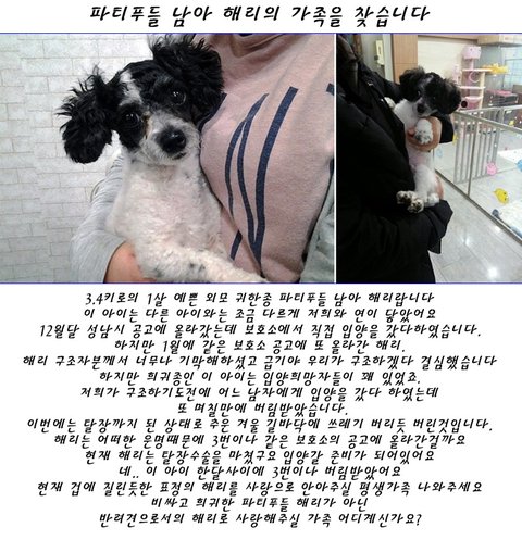 한달에 3번이나 버려진 파티푸들 해리의 입양처를 찾습니다
