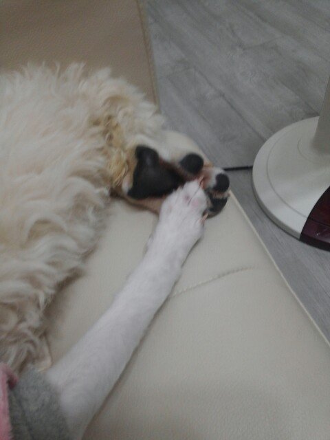 비숑 마루 동생이아닌. 짱아 동생 품속에서 어화둥둥중
