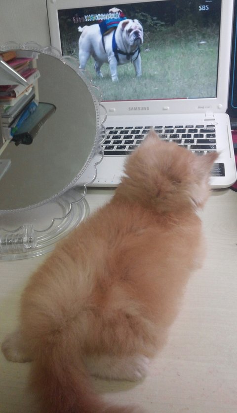 얌전히 있길래 티비시청 같이하고 있는 줄 알았는데