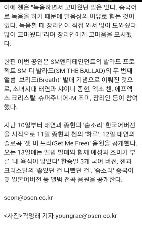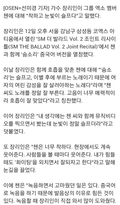 장리인 "엑소 첸, 너무 착해..항상 웃어준다"