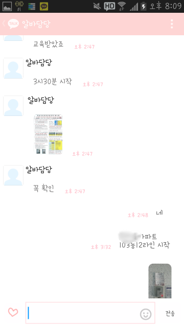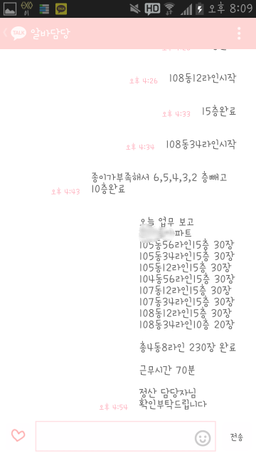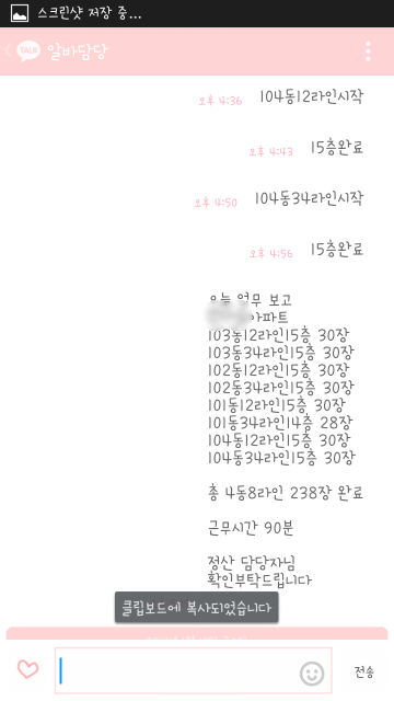 그리고 카톡으로실시간보고도하고 카톡으로한시간전에 붙히러간다고 해야함