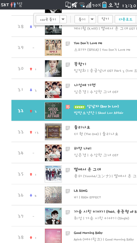 와우지니랑멜론!!!!! 둘다50위권안!!!