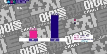 슈퍼아이돌차트쇼에서 윤두준을 뽑은 남여비율이 남자가 압도적으로 많음 ㅋㅋㅋ