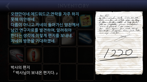 이런식으로 중간중간 나오는 힌트들을 무심히 지나가면 안되고 내용과 추리를 하기 위해서는 꼼꼼히 기억을 하고 있어야 게임 진행을 원활히 할 수 있습니다.