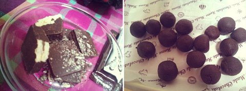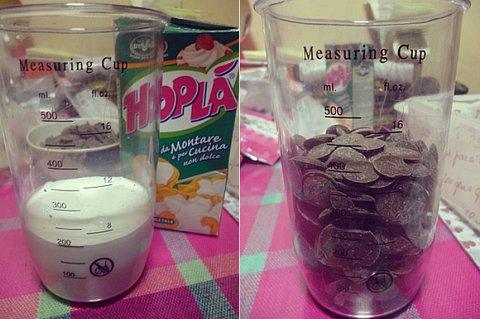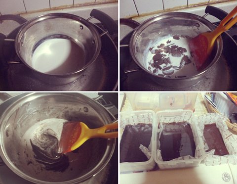 초콜렛 생크림 2:1 비율로 생크림 먼저 중탕에 뎁혀준 후 초콜렛 투척!! 그리고 틀에 굳히면 끝