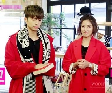 럭키 빨간코트입은 박세영과 커플룩입은 우영이