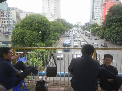 술레파야를 가려다 길을 잃었어요 ㅎㅎ 그래서 올라온 육교 양곤 시내가 다 들어오죠 ㅎㅎㅎ