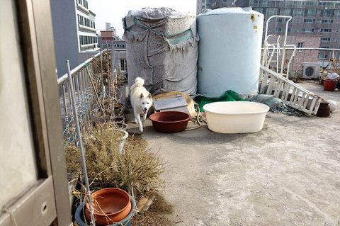 옥상을 혼자 지키는 외로운 왕심이.ㅋㅋㅋ