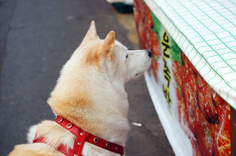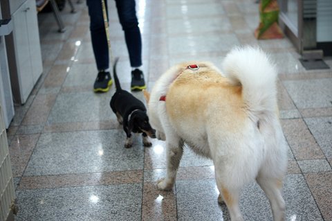 단골 족발집에 와서 킁킁거리고 있는 심바.
