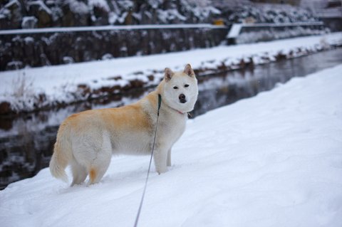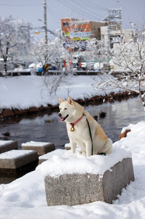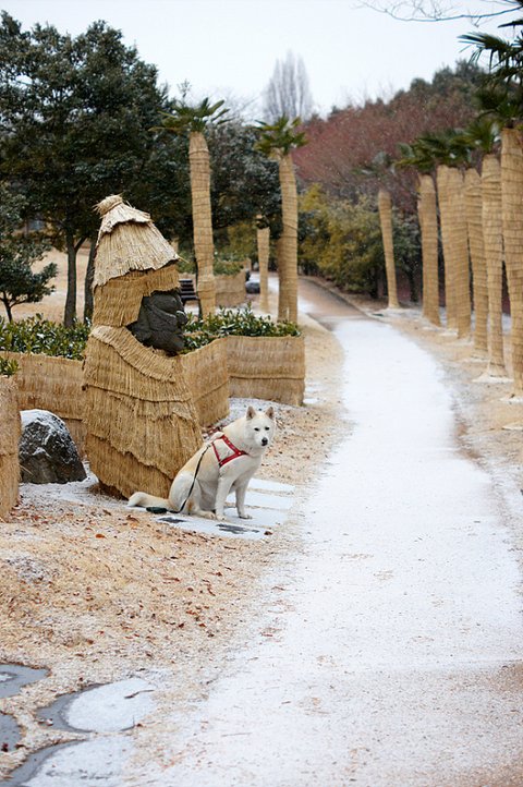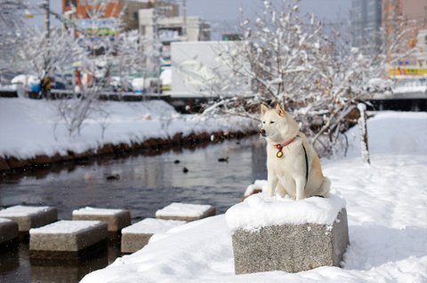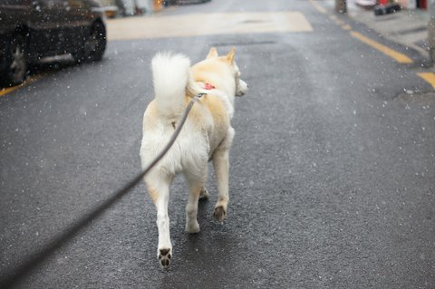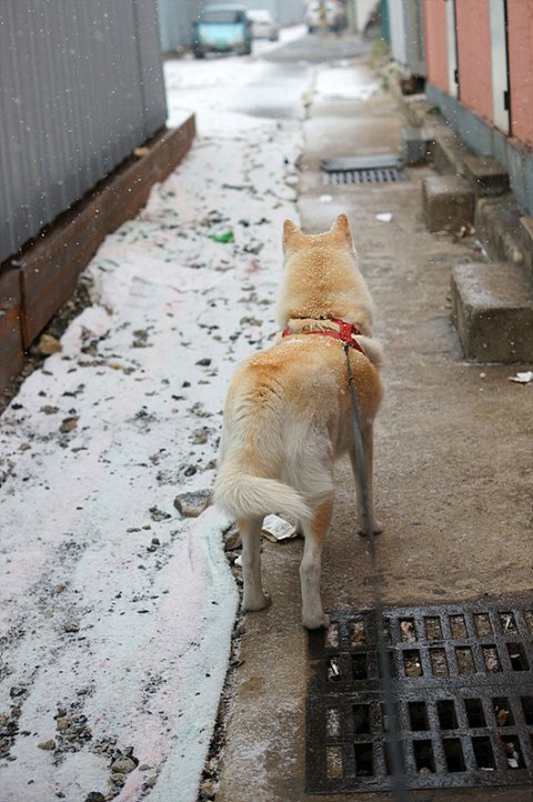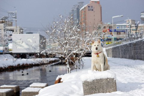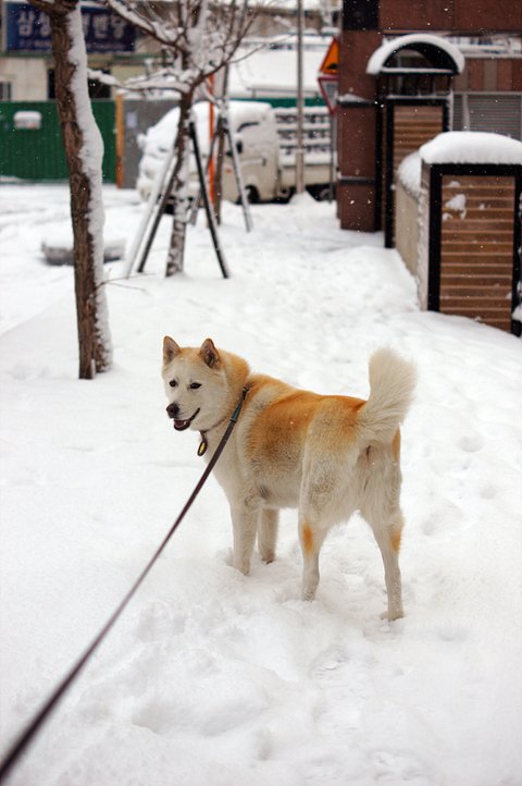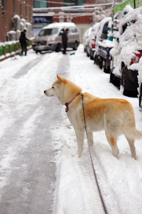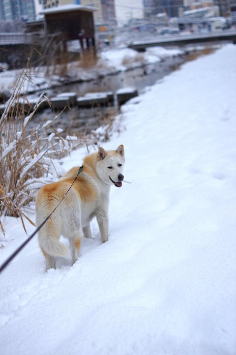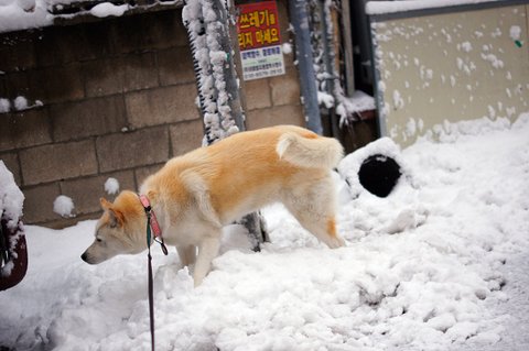 눈이 와서 즐거운 마음에 산책나온 심바