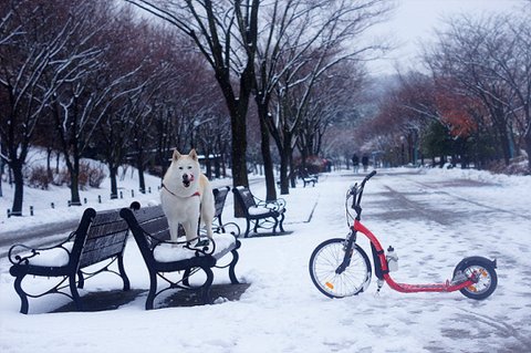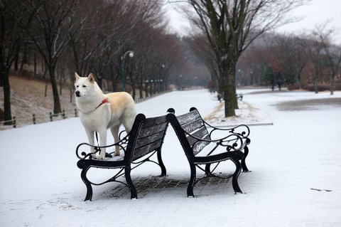 눈 덮힌 벤치에서..